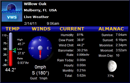 | Peak Wind Gust | 3mph at 9:39am | ||